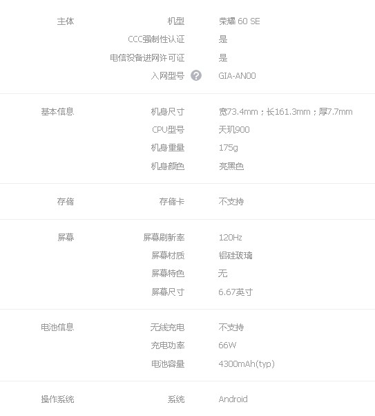 荣耀60se 5G手机 手机荣耀 亮黑色 8+256G 全网...